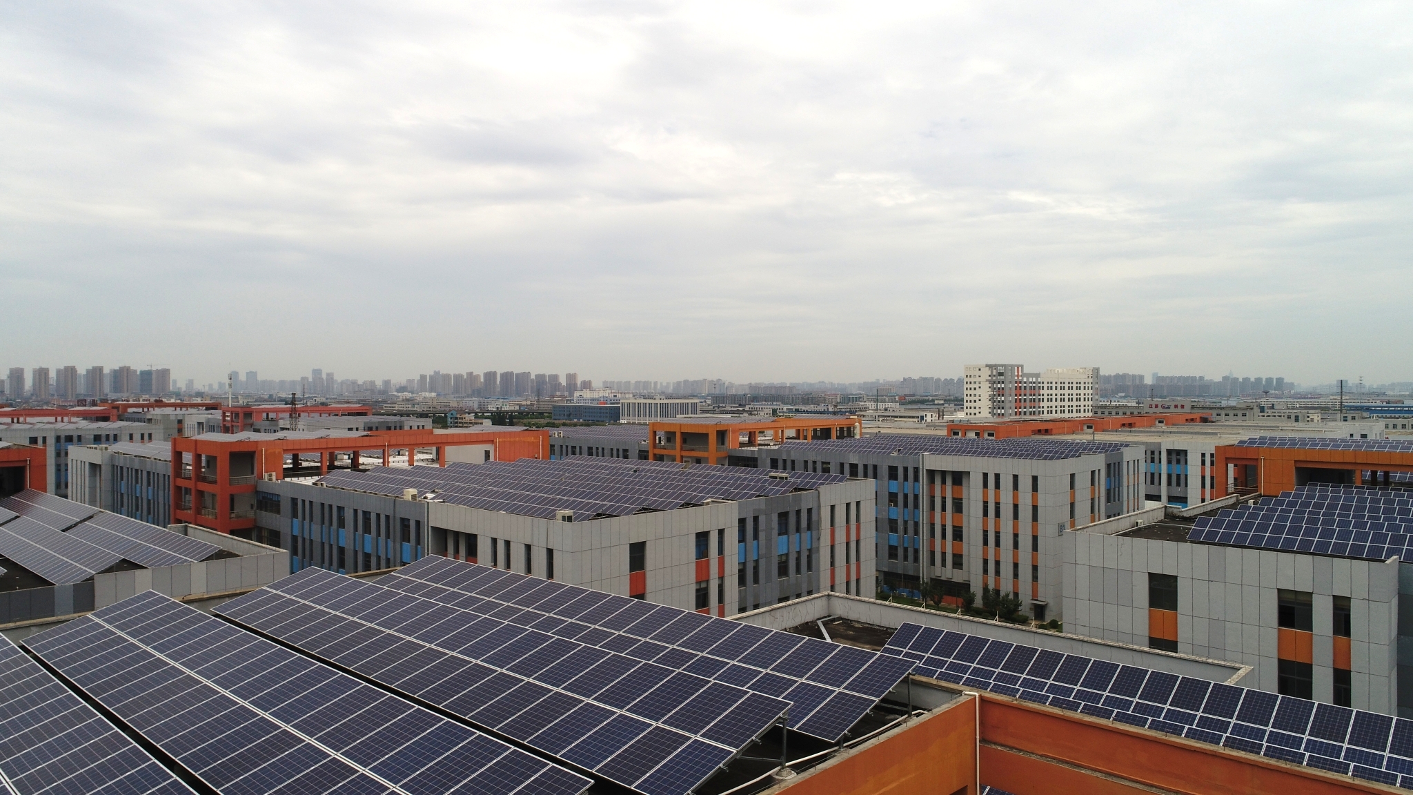 常州湖塘工业园3800.7kW光伏发电项目利用湖塘工业园区11个厂房屋面进行光伏系统建设,总建筑屋顶面积约6万m²,总装机容量为3800.7kW。